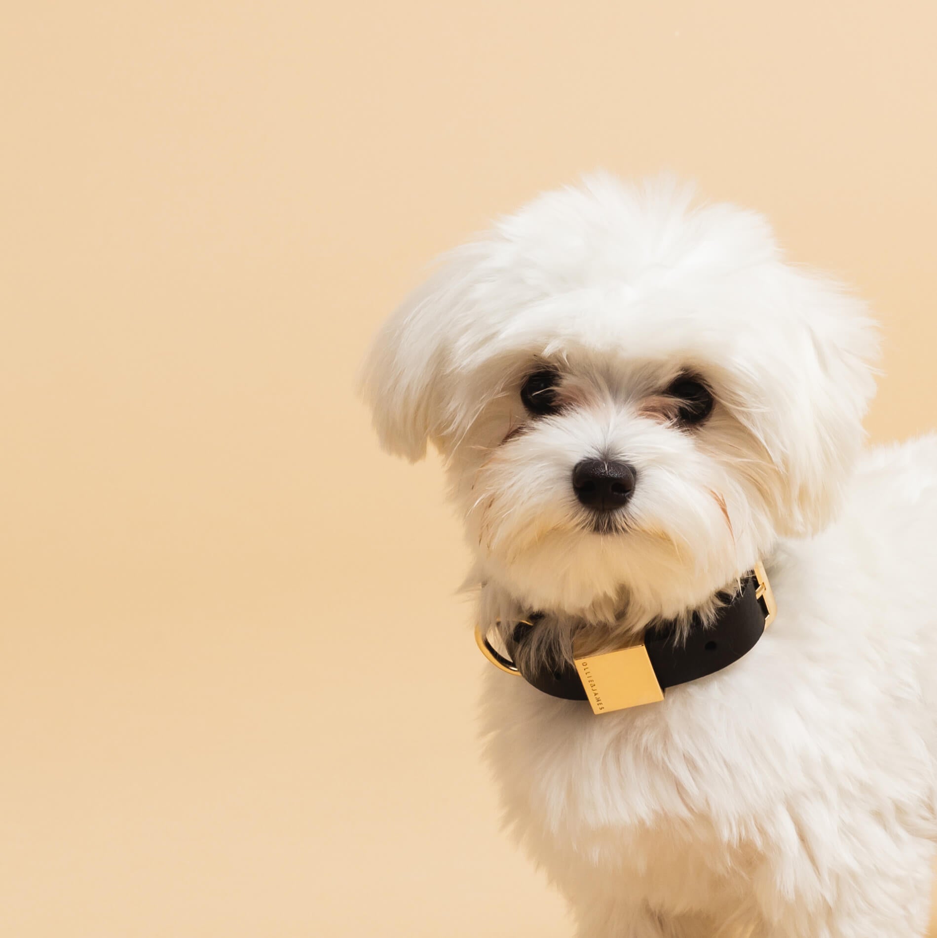 OLLIE & JAMES designer dog collars are a statement of style. Made from Italian leather and iconic gold hardware.